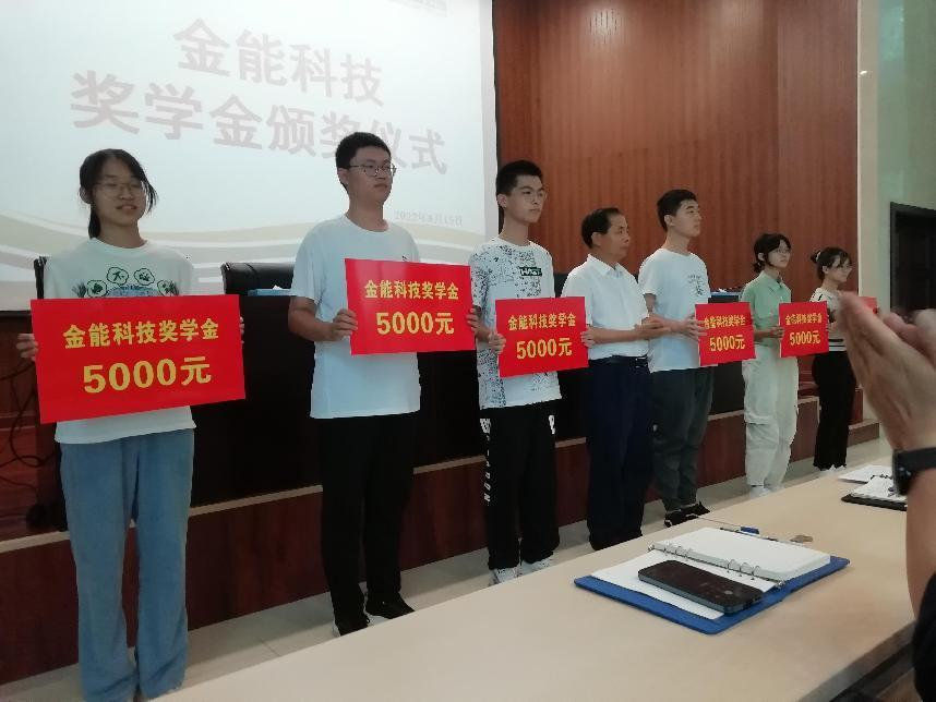 8月15日,金能科技股份有限公司为房若民、杨金芬、郑望东等8名公司员工子女颁发奖学金。