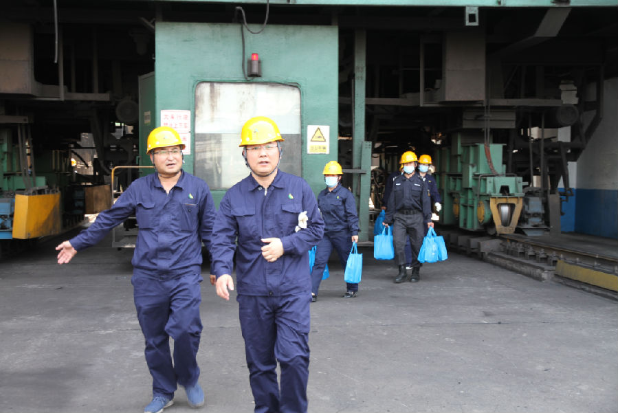 在炼焦车间,谷总仔细查看了现场工作环境,仔细询问大家的工作情况,对焦炉岗位员工不惧高温、坚守一线的奉献精神予以充分肯定。他要求车间负责人一定要扎实做好防暑降温工作,合理安排作业内容,落实好安全生产措施,确保高温季节一线员工身心健康。