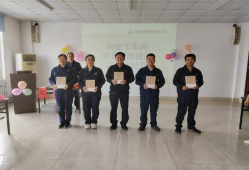 通过三轮PK,超越队取得第一名,不好惹队取得了第二名,在游戏中温习了设备提升的理论知识,为以后的设备提升工作奠定了扎实的理论基础。最后由油加工主任赵荣军做发言总结,一方面感谢同事们的积极参与,表示咱们车间员工平均年龄47岁,在这样情况下大家依然展现了团队精神与活力,另一方面,更重要的是看到了大家身上宝贵的团队合作精神。“同一个团队,同一个目标”,相信在大家的携手努力下,油加工团队的设备管理提升会更上一层楼!