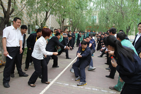 “加油,加油……”,呐喊声、欢呼声、掌声此起彼伏,不绝于耳,飘荡在办公楼东林荫路的上空。参赛队员瞪圆了眼,握紧了绳,憋足了劲,身体同角度后仰,且脚头顶脚跟,俨然一个整体,这是公司运动会拔河比赛的现场。经过激烈角逐,一厂代表队脱颖而出,荣获五连冠。