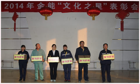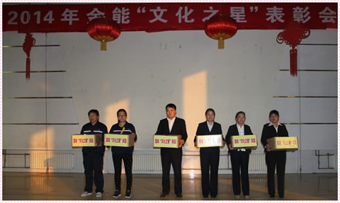 会议宣读了《关于表彰2014年金能“文化之星”的奖励通报》,文化之星代表赵新与钱金金作了典型发言,公司领导为12名文化之星颁发了奖品,公司副总经理张文勇作了总结讲话,他首先对获得金能“文化之星”的人员表示祝贺,并要求各单位或各有关人员要积极推荐文化之星,宣传文化之星,争当文化之星,并以文化之星的评选为契机,营造浓厚的学习文化的氛围,动员大家践行文化,让金能文化开花结果。