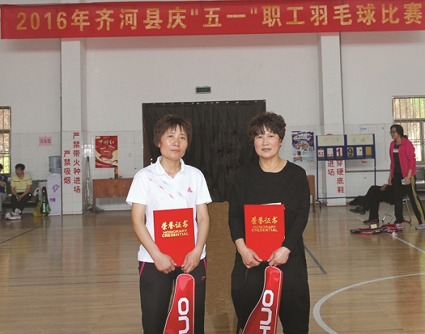据悉,此次齐河县庆“五一”职工羽毛球比赛由县总工会和体育局联合举办,历时3天,设团体、男单、女单、男双、女双、混双等多个项目,各企事业单位参与热情高涨、报名踊跃,共有80多个单位参加了选拔,最终44个单位300余人参加比赛,经过激烈角逐,我公司员工赵丽丽、王光英获得90组女子双打亚军,赵丽丽、孙玲获普通女子双打第四名,为公司赢得了荣誉。