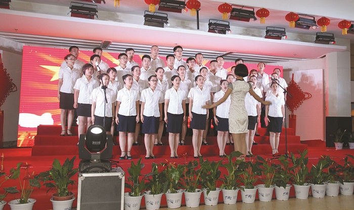 周年暨七一颁奖晚会”上,我公司选送的节目大合唱《没有共产党就没有新中国》赢得了满堂彩,将晚会推向了高潮(图为合唱现场)。