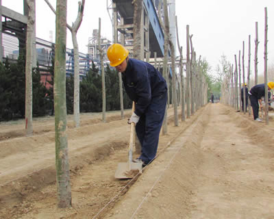 人勤春早。公司全员行动,植树添绿。大家三五一组,挥锨挖坑、扶树填土,围堰浇水、保墒刷白……忙得不亦乐乎,一幅忙碌的植“绿”图,今春将完成植树4000余株(图为员工劳动现场)。
