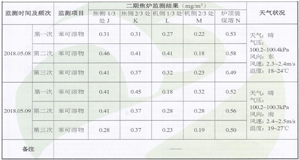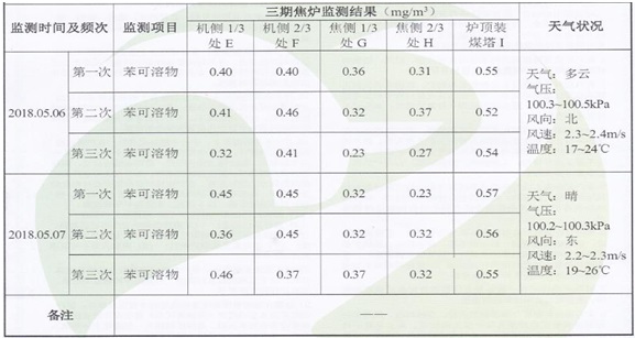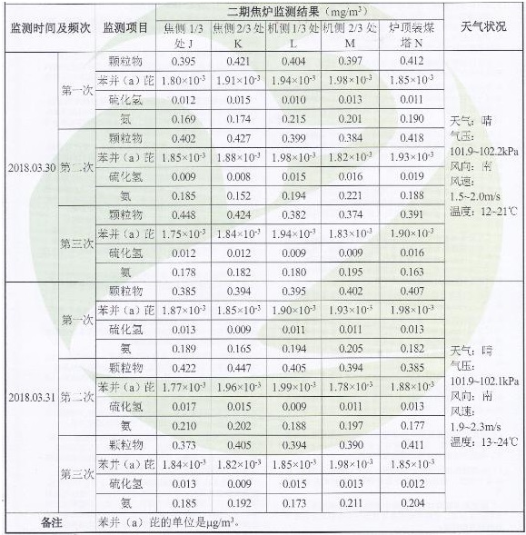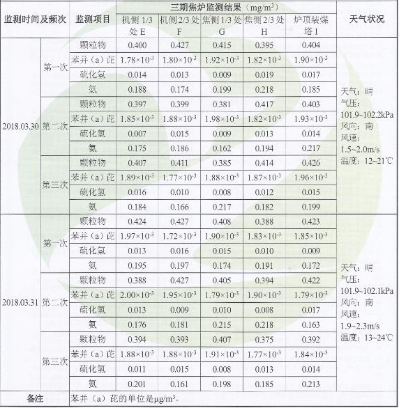 2018年3月29日公司委托青岛衡立检测有限公司对公司厂界无组织与焦炉无组织进行检测,检测结果见下表:(具体检测报告见附件2)。
